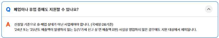 | 신청 불가 | 휴업·폐업 상태, 매출 0원 사업자 |