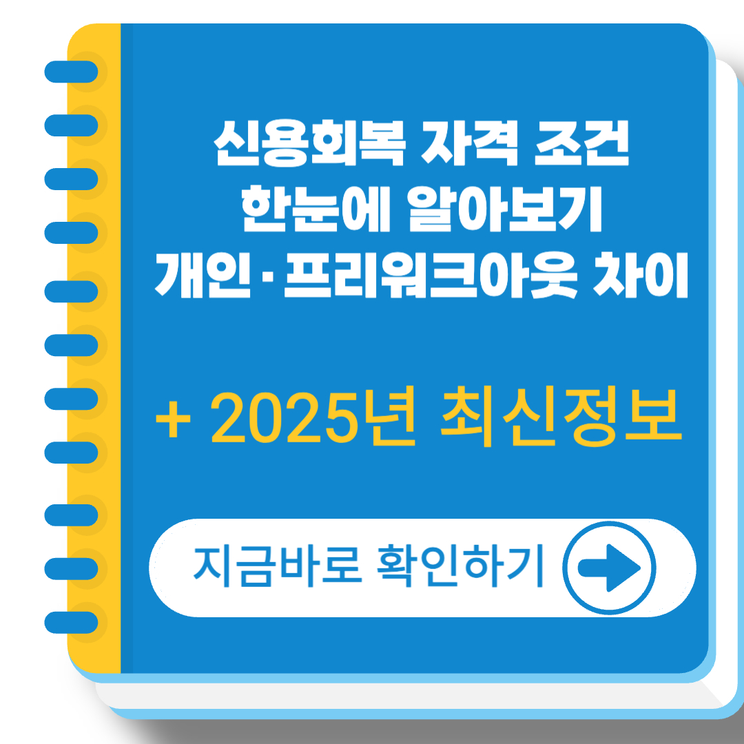 경제적 어려움으로 상환이 힘든 분들을 위해 마련된 신용회복 제도는 이자 감면과 채무조정을 통해 재기를 돕는 대표적인 금융 지원 제도입니다. 이번 글에서는 개인워크아웃과 프리워크아웃의 차이점, 대상 조건, 신청 방법을 한눈에 정리했습니다.